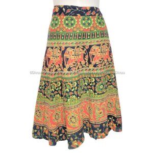 Wrap Cotton Skirt, with an elephant and paisley print.