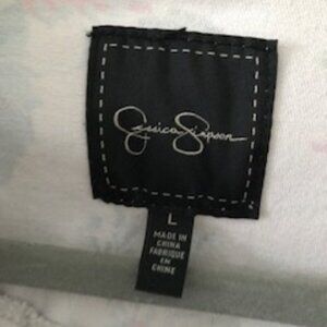 98% Cotton / 2 %, Spandex , metal button closure, size L , small, fits better size M, Excellent !