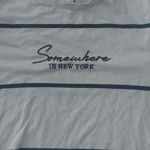white with black stripes tee "Somewhere in New York" pit to pit: 20" shoulder to hem:24.5" T13