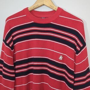 Cotton knit crew neck Avirex red and black stripes size XL pit to pit - 25" length- 30