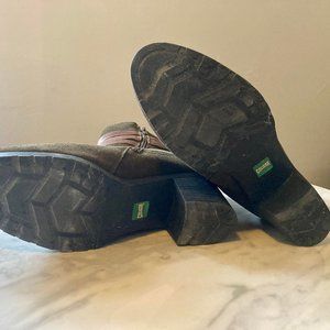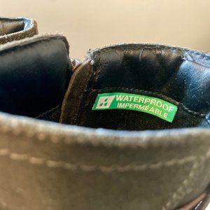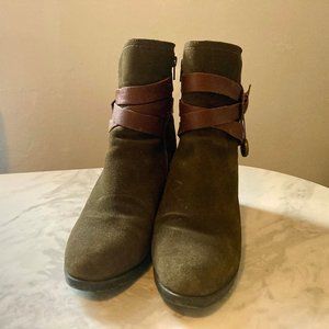 Women's Cougar black Arvida winter boots. Designed using a fine suede upper, these round toe boots feature inside zip closure, supportive micronyex lining, a cozy memory molded insole and an anti-slip outsole with lightly stacked block heel. Size 10, colour is olive with brown straps and buckles. Only worn a handful of times, in excellent condition. Waterproof.