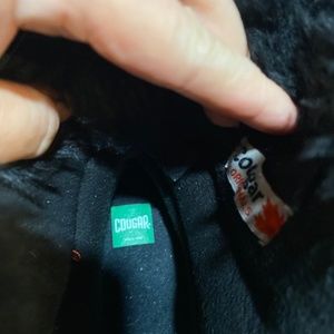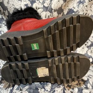 Red leather Cougar brand Pillow boots. Black faux fur cuff at top of boot. Gold tone Front leather zipper for easy on/off use. Treads in excellent condition. Always leather protected. Worn twice.