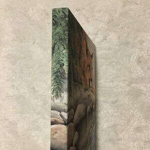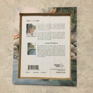 Good preowned condition canvas print by first nations artist, Sue Coleman featuring a cougar and a stylized reflection by Pacific Music and Art. Printed in Canada. Sue Coleman is a very talented local Canadian artist. Artistry in every stroke.