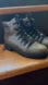 Olive green and shiny makes them stylish but functional as they are waterproof as well as having a heavy tread on the bottom.