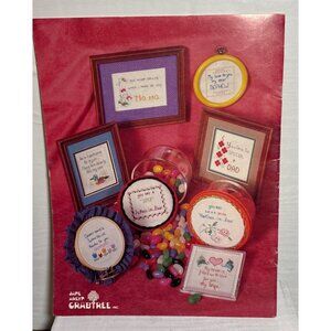 This vintage cross-stitch pattern booklet offers a collection of family-themed designs. Ideal for creating personalized gifts or decorative keepsakes.