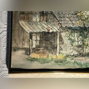 Country Cabin Original Water Colour. Artist Unknown. Gold tone pressure Frame