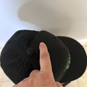 Stylish black cap with 'Country Strong' embroidery in green and tan. I did hand wash the cap and there is a (as seen in picture 2) white spot on top of the cap. I am not sure if that is laundry soap residue or fading.