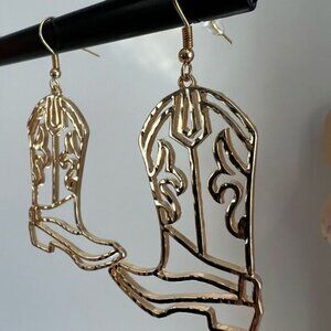 Country Western Gold Tone Shiny Cowboy Boot Earrings Rodeo Cowgirl