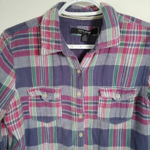 Coupé Pink/Blue/Green Plaid Flannel Shirt, L