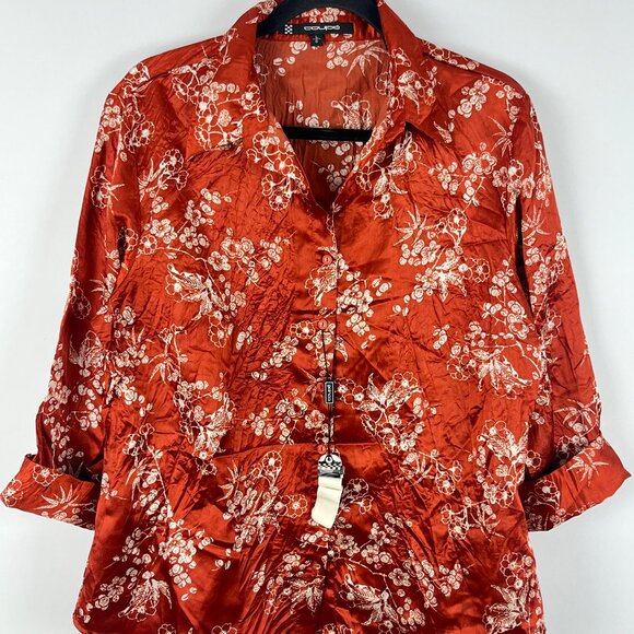 Coupe Top Blouse Size L Brown Floral 3/4 Sleeve Button Up 100% Polyester