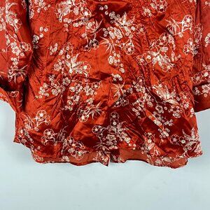 This beautiful Coupe top blouse in size L features a lovely brown floral pattern, perfect for any occasion. The blouse has 3/4 sleeves and a collared neckline with a button closure, giving it a relaxed and casual vibe. It is made of 100% polyester material, making it lightweight and easy to care for with machine washable instructions. This versatile blouse can be worn for travel, parties, or everyday wear, making it a great addition to any wardrobe. The blouse is designed with a relaxed fit and is suitable for summer, fall, and spring seasons. Made in India, this button-up blouse is a basic style with no vintage or personalized features.