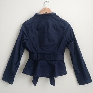 Very good used condition, lightweight, unlined. Cute collar. 98% cotton, 2% spandex. A couple of faint marks on cuff/lower sleeve (see photo 4). Please see photos for measurements.
