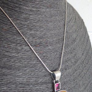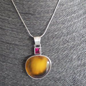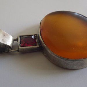 Couture Danka Czapnik Amber & Ruby Pendant Sterling Silver Signed
