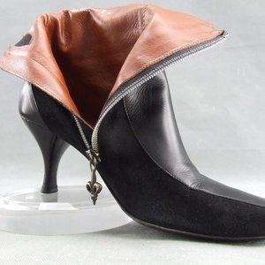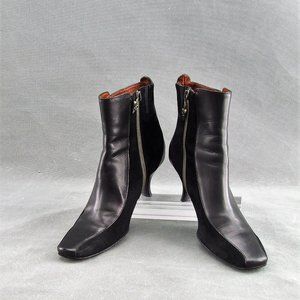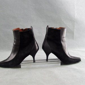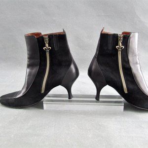 Nice pair of Couture Donald J Pliner ankle boots, made in The mountains of Italy. Size 8 M (medium). Amazing details. Materials: black leather and black suede. Side zipper. 2 3/4 inch heel height. In good pre-owned condition, some wear on the soles but well taken care of.