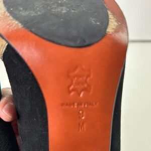 Elegant black and brown animal print heels. Leopard print accents. Perfect for a stylish look. Have a western style.