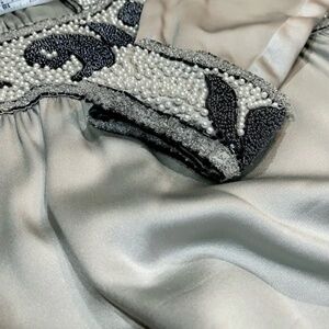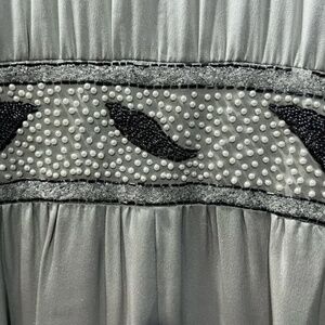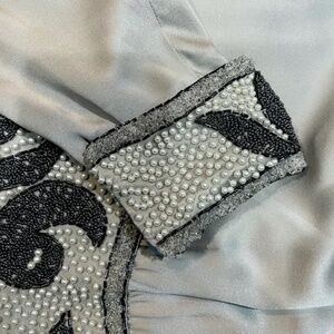 Couture Satin Silver Gown: hand beaded - art nouveau - handmade - deco style