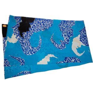 This bright blue with white and black rendering is another artistic showcase of the artisan's expression of multifaceted colours and prints
