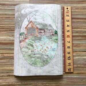 Covered Bridge Countryside Completed Wall Hanging Artex Tri-Chem Painting 9x12"