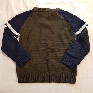 Covington boys size 4T knit sweater olive green with blue sleeves, white accents, no defects, NEW