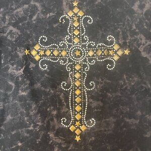 Cowgirl Hardware Shirt Lightweight Jersey Knit Embellished Cross Distressed Worn