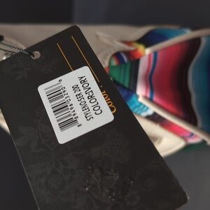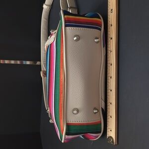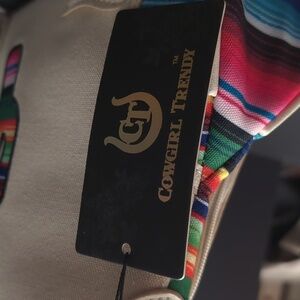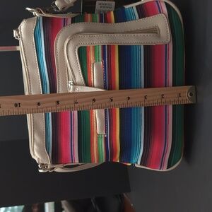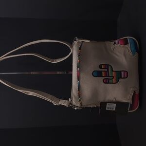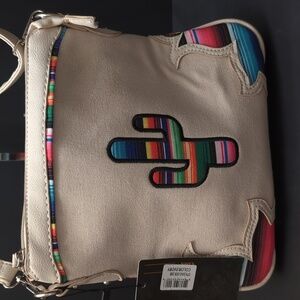 NWT,Cowgirl Trendy women's ivory faux leather/canvas Western Mexican Zarape Cactus concealed carry crossbody bag.
