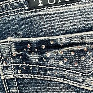 Who wants stylish comfortable shorts this summer? These super cute Tuff Flex medium wash shorts are adorned with crystals on the front. Attention grabbing sparkles day or night! Limited