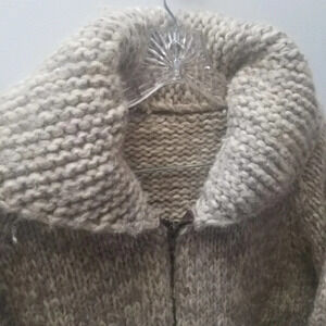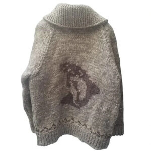 Cowichan Vintage Wool Whale Hand Knit Zip Up Sweater Jacket