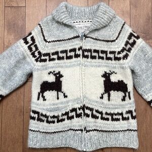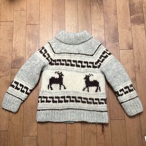Cowichan Wool Cardigan Vintage Deer Handknit Last Of The Mohicans Small Medium