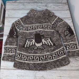 Cowichan-Style Wool Zip Sweater Brown Cream Moose Pattern – Unisex 20"