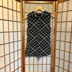 Cute and stylish sleeveless Banana Republic blouse in black with a check pattern.