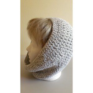 Chunky Thick Cowl Scarf, color white-gray melange , Hand crochet Women's Scarf cawl style scarf.Neckwarmer.