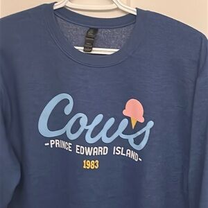 Cows Blue Sweatshirt, size S. Fleece, very soft.