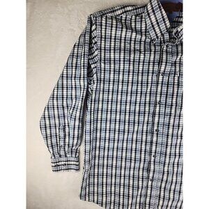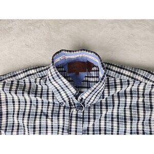 Coyote Mood Shirt Mens Large White/Blue Square Plaid Long Sleeve Snap Western 100% Cotton