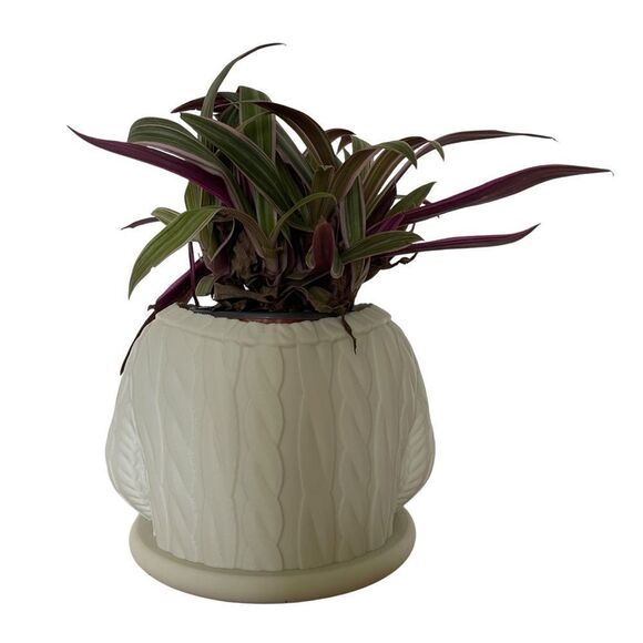 Cozy Aran Cable Sweater Planter - Perfect for Knitters & Craft Lovers Off-White