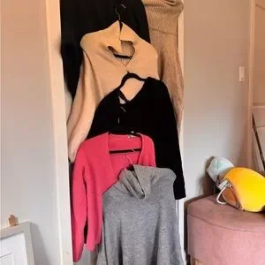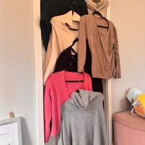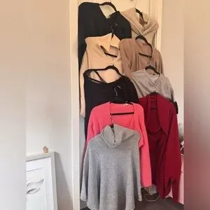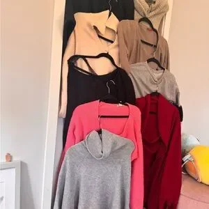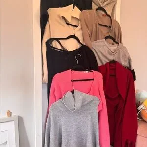 A collection of cozy sweaters in various colors. Perfect for layering and staying warm.