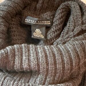 πCozy Banana Republic Black Grey Merino Ribbed Turtleneck Fringe Poncho Sweater