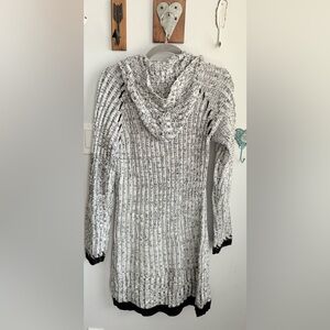 Stay warm and stylish with this cozy black and white knit sweater. Perfect for layering, this sweater features a chic design that pairs well with any outfit.