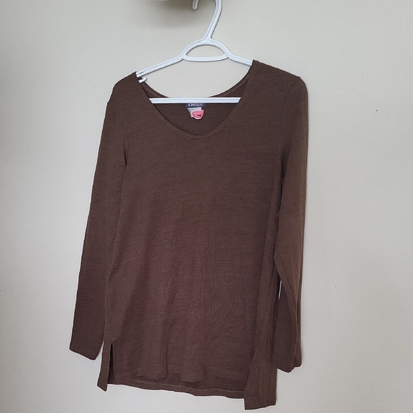 Embrace comfort and style with this brown long sleeve top by Kim&Co. Crafted with soft fabric, it offers all-day comfort while keeping you looking chic for any casual outing.