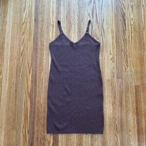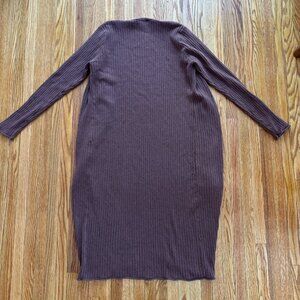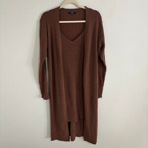 Two piece lounge set - ribbed stretch knit tank sweater dress with long matching open cardigan.