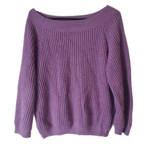 Wrap yourself in comfort with this soft, chunky knit sweater in a beautiful purple hue. Features a wide neckline that can be styled off-the-shoulder for a relaxed, feminine look. Perfect for layering in fall and winter.