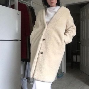 Comfy n warm teddy bear coat from Urban Outfitters. Cream with brown buttons. Perfect condition. Would best fit XS - M 🧸