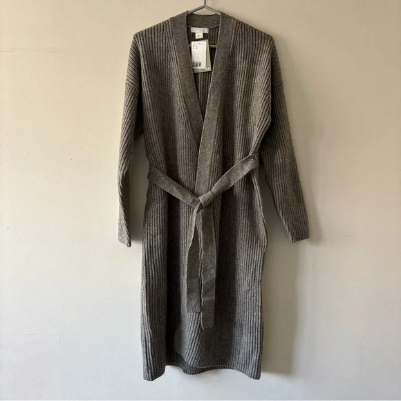 Brand new with tag. Stylish charcoal knit cardigan with belt.