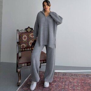 Cozy Grey Knit Sweater & Pant Set Comfy Lounge Wear Gray - Size S, M, L, XL