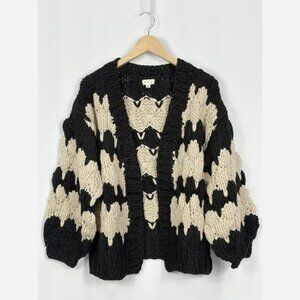 Cozy meets chic with this hand-knit cardigan — a holiday-ready sweater designed with a relaxed fit, long balloon sleeves, and a beautiful stripe pattern that feels handmade.