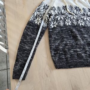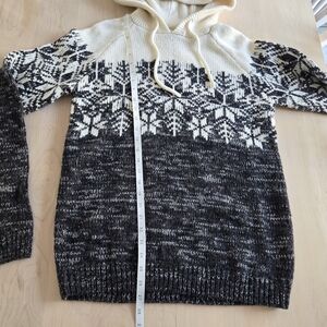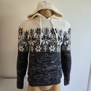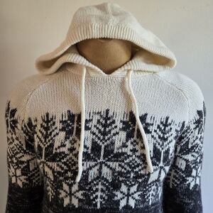 Warm knit sweater with a stylish snowflake design by Cabin Fever. Features a comfortable hood and drawstrings. Perfect for chilly days.