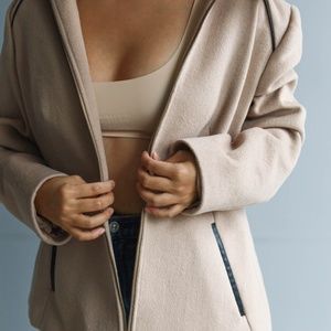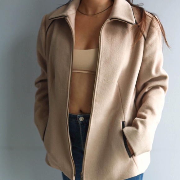 Sleek and classy light beige lined fleece coat, oversized & relaxed fit.