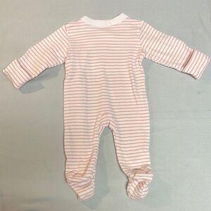 These charming pink footies/sleepers feature a delightful combination of star patterns and classic stripes, ensuring warmth and comfort with their soft, cozy material and enclosed feet.