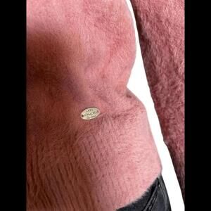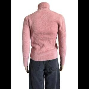 Stay stylish and warm with this cozy pink turtleneck sweater. Crafted with a soft and fuzzy texture, this sweater features a classic fit that hugs your figure beautifully. Perfect for layering or wearing on its own, it pairs well with jeans or skirts. Ideal for chilly days, this versatile piece will quickly become a wardrobe staple.