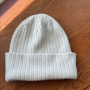 Stay warm with this cozy ribbed knit beanie. Features a classic cream color.