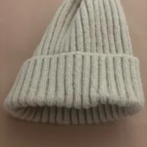 Stay warm with this cozy ribbed knit beanie. Soft and stylish in a light gray color.
